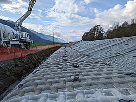With Incomat Pro, unique filling heights of up to 3.50 m can be achieved. Thanks to innovative textile technology, an improvement of 95% has been achieved. This results in faster construction progress on site and lower installation costs. The increased tensile strength enables a more effective filling process, which ensures greater flexibility on site.