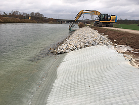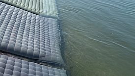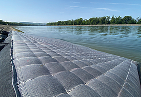 Incomat Flex consists of individual units ("cushions") that are joined together by connection strips. The taper in the area of the webs acts as a predetermined breaking line. Woven-in filter points at the corners of the cushions enable the reduction of hydrostatic pressures below the revetment. The tapered connecting strips give the mattress a certain two-dimensional flexibility in the event of subsidence in the subsoil or if the mattress is washed out.
