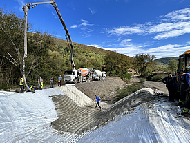 The geosynthetic concrete mattress consists of two high-strength fabric layers that are filled with fluid concrete on site. This creates a stable, adaptable protective layer that adapts perfectly to complex terrain shapes - both above and below water.